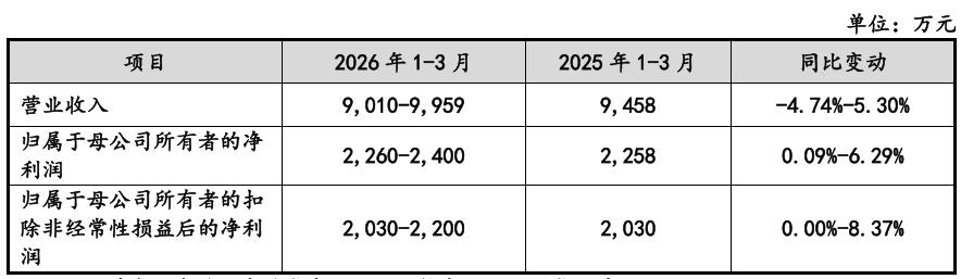 正大种业预计2026年1-3月营业收入约为9,010万元至9,959万元,同比变化-4.74%至5.30%;归属于母公司所有者的净利润约为2,260万元至2,400万元,同比上升0.09%至6.29%;归属于母公司所有者的扣除非经常性损益后的净利润约为2,030万元至2,200万元,同比变化0.00%至8.37%。