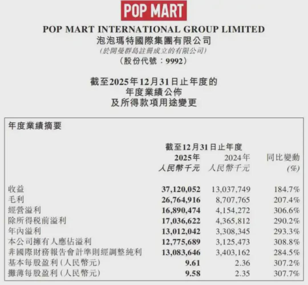 泡泡玛特的2025年财报数据具体为: