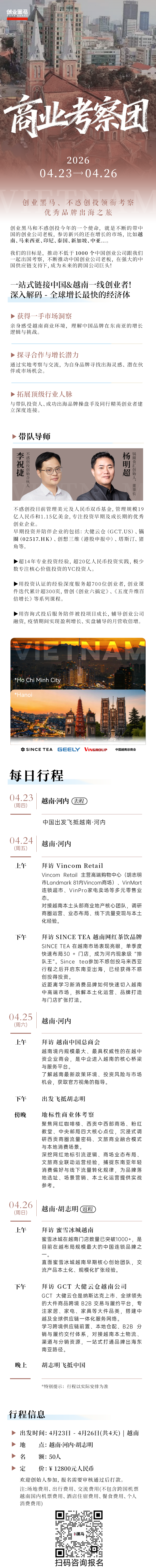 如果您也正在探索新兴的海外市场,欢迎报名黑马·商业考察团,与两位老师一起出国考察,争取成为未来的跨国公司巨头!