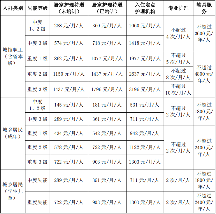 比如,这是成都目前的长护险待遇标准: