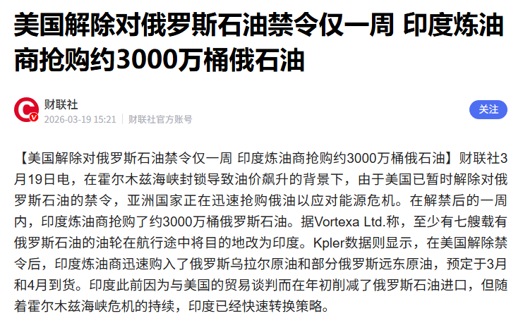 就是靠这一招,印度在短短一周时间,就狂扫3000万桶俄油,直接创下了进口新高。