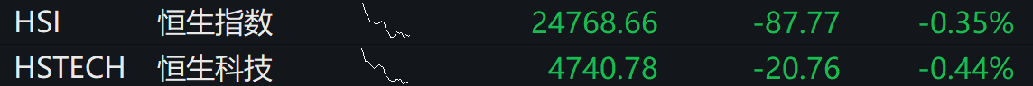 09:21 港股开盘丨恒生指数低开0.35%