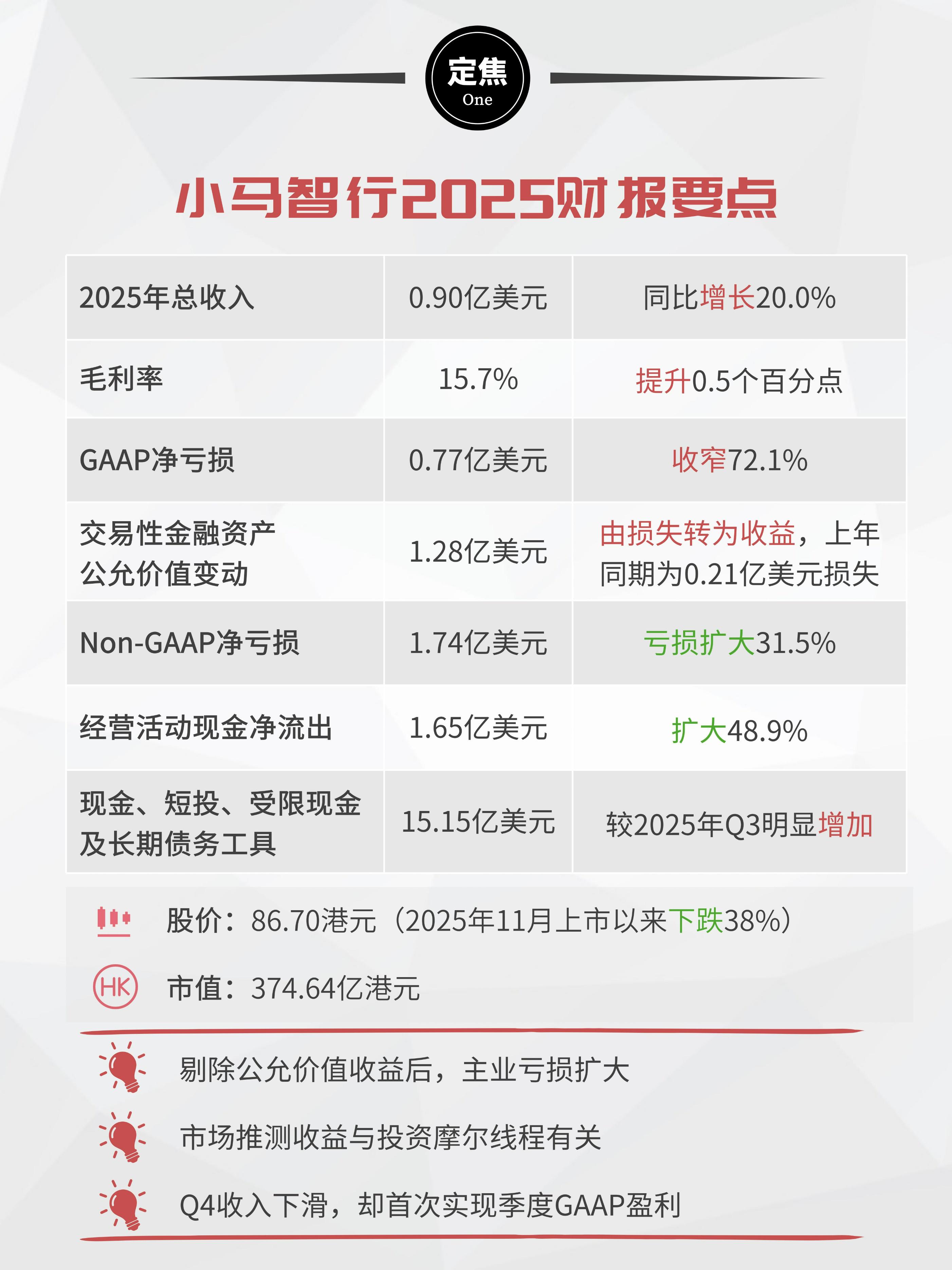 Q4利润表里有一笔高达1.32亿美元的“交易性金融资产公允价值变动”收益。剔除这部分收益,Q4的非公认会计准则(Non-GAAP)净亏损为4904万美元,较上年同期的4132万美元亏损同比扩大。