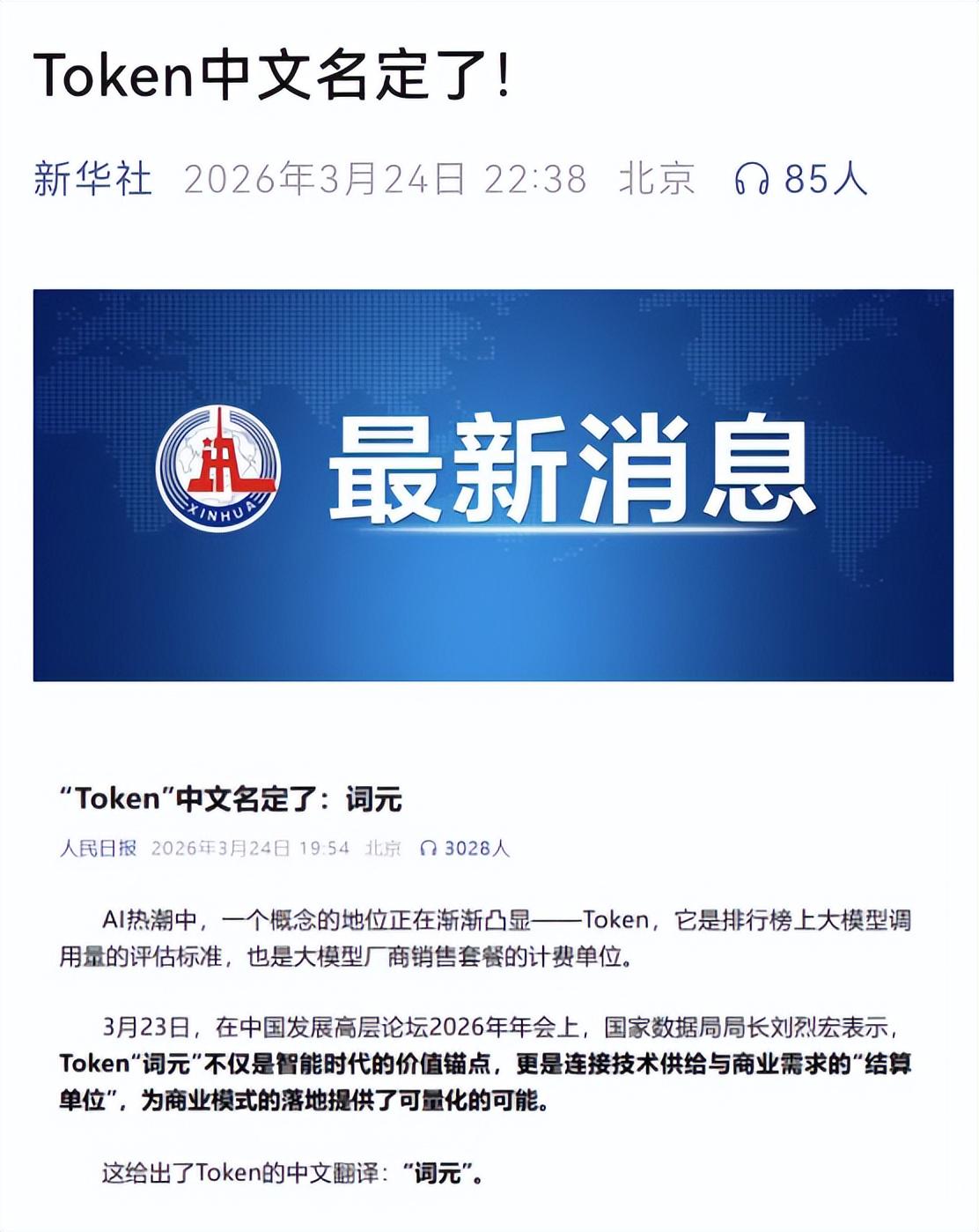 3月23日,国家数据局局长刘烈宏给Token定了中文名——词元。同时披露了一个数字:中国日均Token调用量突破140万亿,两年增长超千倍。