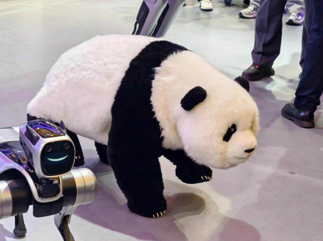 而在今年的家电及消费电子博览会(AWE 2026) 现场,智元机器人也套上了熊猫皮套,甚至在现场翻起了跟头,机器狗直接爆改“功夫熊猫”(素材来源:小红书@臻i星星(臻星锁叻))。