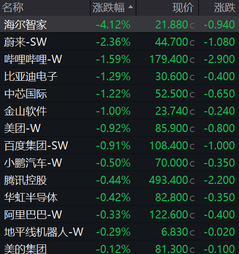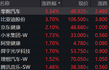 科网股走势分化,零跑汽车涨超5%,比亚迪股份涨超3%,小米集团涨超1%;蔚来跌超2%,中芯国际跌超1%,百度、腾讯、阿里等走低。