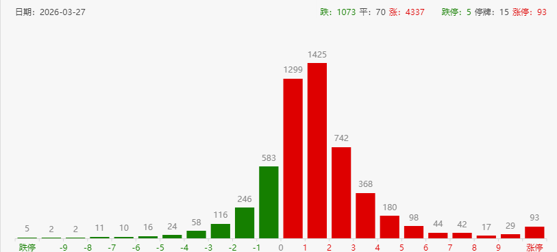 还真应了那个段子:散户不割大资金就不拉。昨晚油价大涨美股暴跌,再加上盘前又有报道称美国防部考虑向中东增派1万人地面部队,都觉得周末可能会升级,日韩股市低开大跳水,广大股民还是比较慌的。A股开盘也是大幅低开,特别是受昨晚美股影响的光通信和存储等科技板块,相信很多股民都慌的割肉了,没想到低开探底后资金就进场了,光通信、创新药、锂电池等板块爆拉带动市场情绪,指数快速回升,收盘超过4300家上涨,这周要么是普跌要么是普反了。