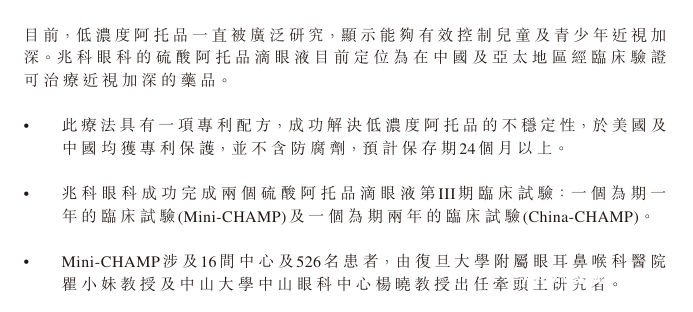 兆科眼科的硫酸阿托品滴眼液以差异化优势定位市场。