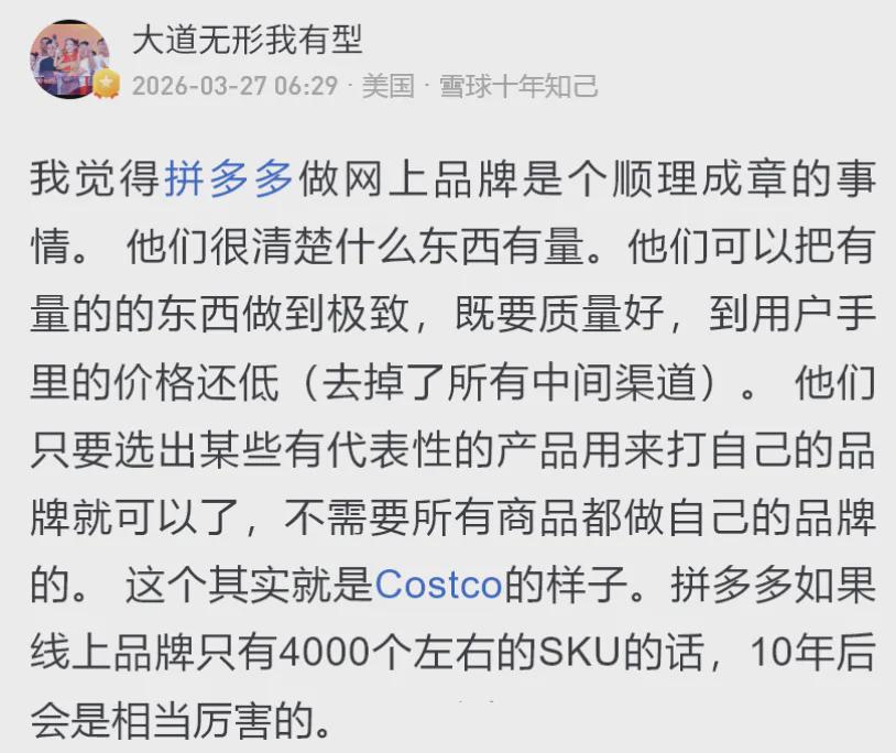 今天早上,段永平在雪球上讨论“拼多多要做新拼姆”的话题,大佬给了个很丝滑的评价: