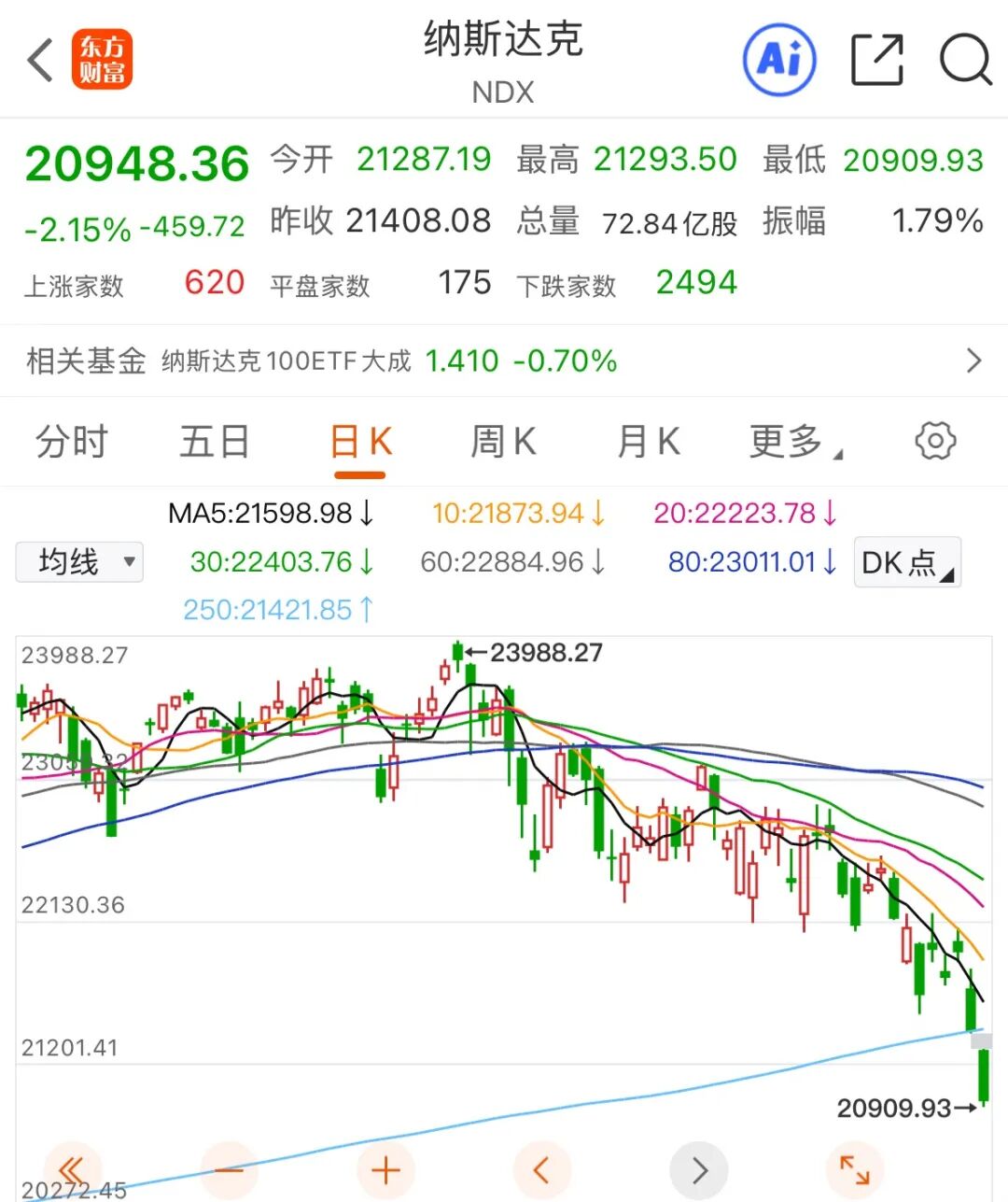 无论道指、纳指,周五都跌破了年线这一关键指标。