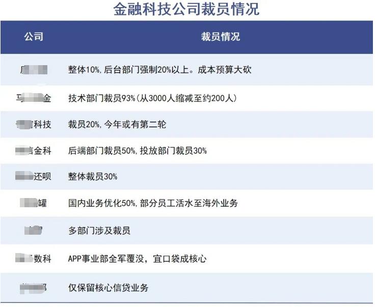 近日,据媒体报道关于“9号新规”冲击之下互金、消金、助贷行业的裁员潮,在网上引发巨大关注。一个据称流出的表格显示,数某科技裁员约30%,马某消费技术团队从3000余人缩减至约200人,度某某裁员约10%且有部分业务线暂停借款服务,某富科技裁员近20%选择在海外逆势扩张。这些曾经活跃无比的网贷公司,如今头上笼罩起裁员、收缩的乌云。
