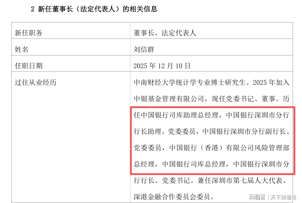 值得一提的是,去年12月,中银基金董事长刘信群上任,其来自公司大股东中国银行,这也是中银基金董事长职位空缺6个月后的补位。