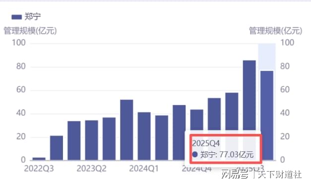 同花顺iFinD显示,截至2025年末,中银基金权益产品(包含混合型、股票型)总规模约为304亿元,而郑宁一人的管理规模就达到约77亿元,占公司总规模的比例超1/4,是名副其实的顶梁柱般的存在。