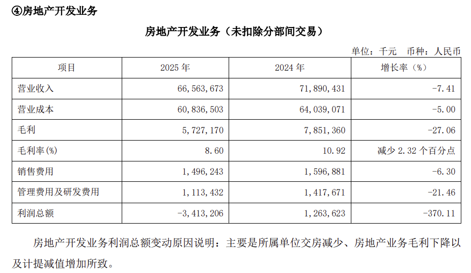 在2025年,中国铁建全年实现营业收入10297.845亿元、利润总额269.330亿元。在房地产业务方面,共计实现销售金额756.42亿元,销售面积557.7432万平方米,实现结转收入金额665.637亿元,毛利57.27亿元,毛利率8.6%。