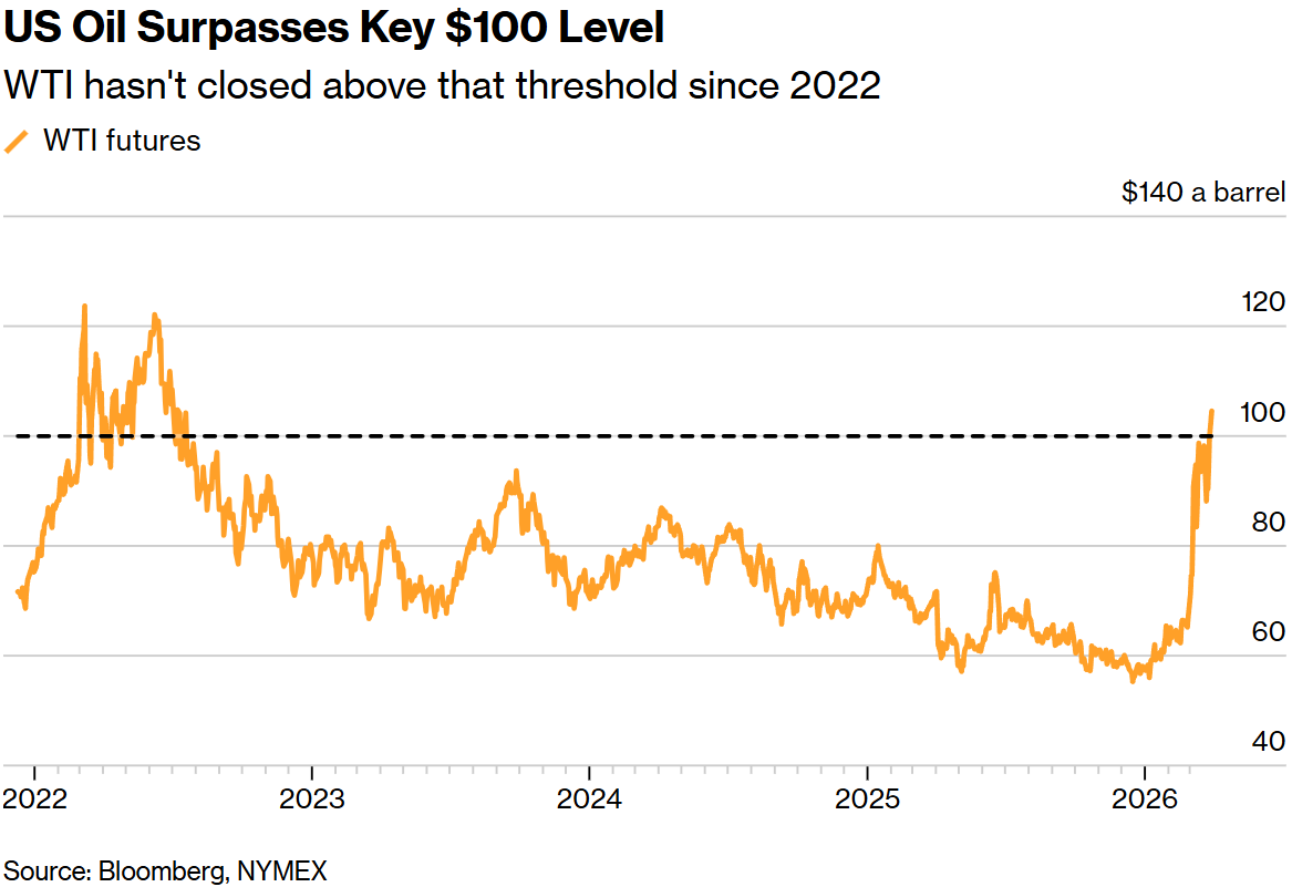 Buffalo Bayou Commodities 宏观交易主管弗兰克·蒙卡姆表示,“100 美元大关不仅是能源市场的象征性关口,对跨资产投资者而言亦是如此,”他认为,投资者将此视为“通胀、增长和政策波动”风险水平上升的信号。