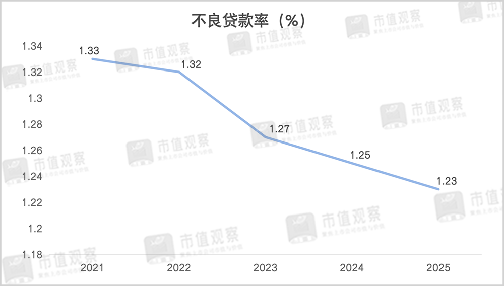 2025年,该行的不良贷款率为1.23%,相比上年末下降了0.02个百分点,自2021年持续处于下降通道。拨备覆盖率为200.37%,资本充足率18.85%,继续保持充足水平。