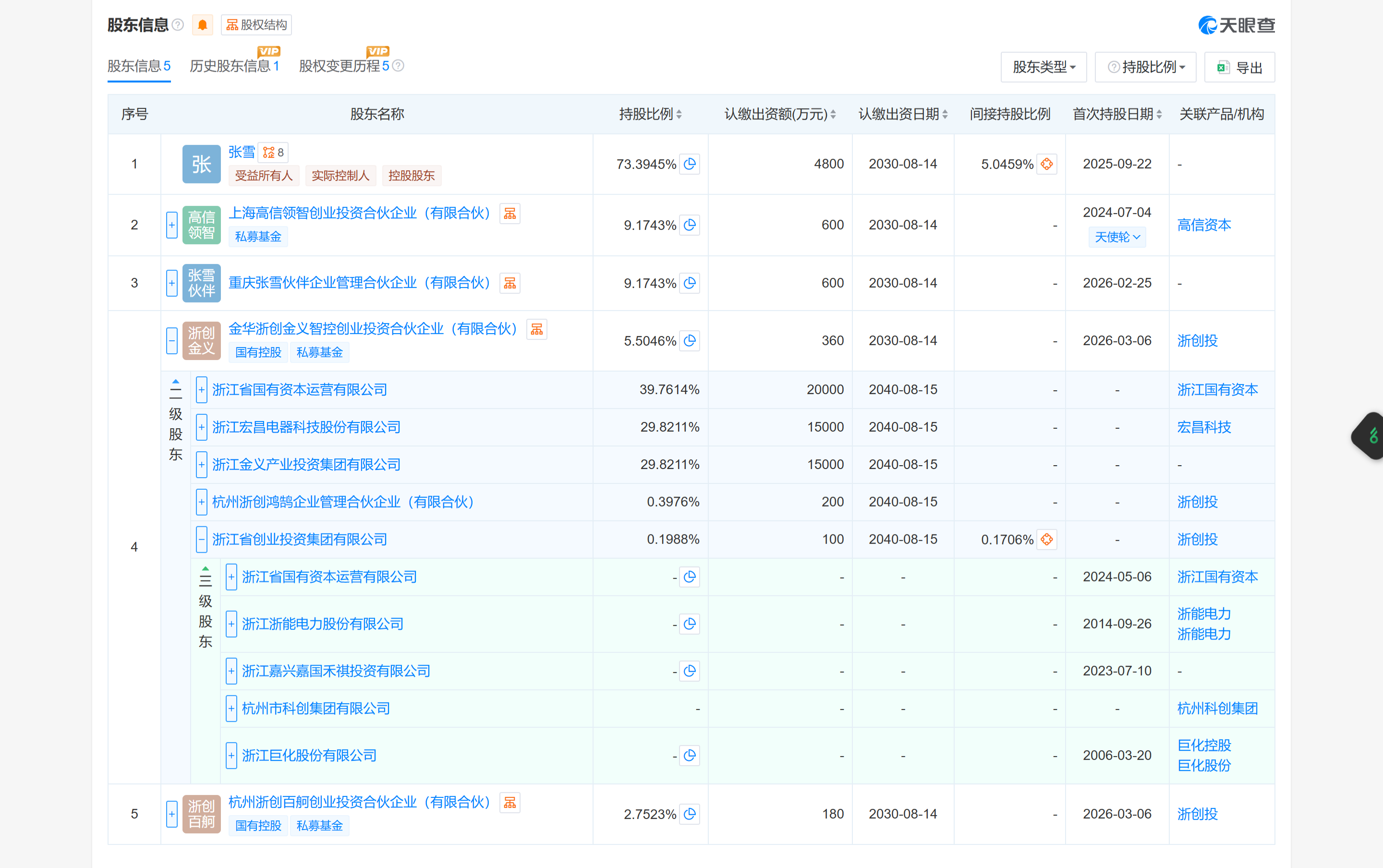 2026年3月初,张雪机车完成A轮融资,投后估值约10.9亿元,本轮投资方金华浙创金义智控创业投资合伙企业(有限合伙)背后,宏昌科技(301008)出资29.82%。