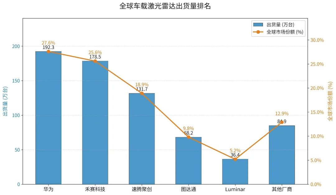 2025年全球车载激光雷达出货量排名,制图:正解局