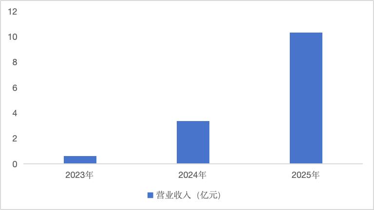 从业绩轨迹来看,近几年,公司营收呈现“跨越式”增长,展现出了极强的成长性。2023—2025年,公司营收从0.6亿元跃升10.35亿元,收入规模增长超16倍,CAGR高达314%。