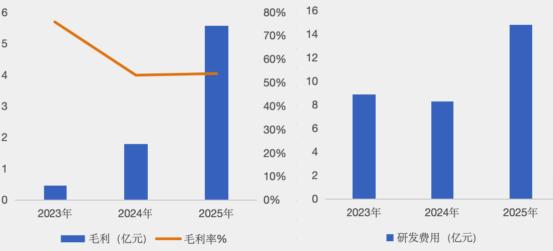 数据显示,2025年,公司实现营业收入10.35亿元,同比增长207.2%;同期毛利达5.57亿元,同比增长210.8%,对应毛利率为53.8%。