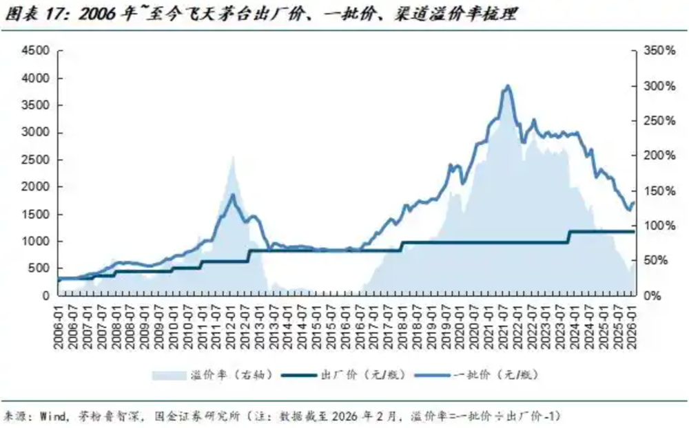 可见,茅台1月在理顺价格体系,尤其是解决非标品价格虚高问题,为市场化定价打下基础;3月则是直接核心大单品飞天茅台提价,这是茅台最核心的收入来源,直接影响公司利润表,将品牌的溢价能力转化为实实在在的利润。