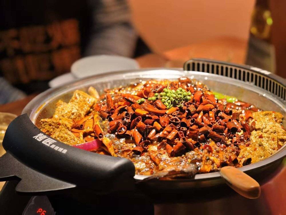 烤匠围绕经典麻辣烤鱼构建整个体验系统。圆形烤鱼盘的发明,看似简单的几何变换,却解决了长方形烤盘受热不均的物理缺陷,使配菜与鱼身在同一个时间轴上完成烹饪。桌面强效排烟系统的升级,则解决了衣物异味的问题。这一细节的价值不在于技术本身,而在于它解除了用户吃完不敢转场的心理负担,使烤鱼从一次性消费转变为社交链条中的一环。