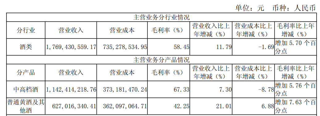 对于2025年营收增长,财报称主要系销量变化等影响所致。根据财报,报告期内,会稽山主营业务收入主要来自黄酒销售,占主营业务收入的89.08%。