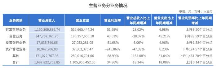 自营业务方面坚持稳健投资风格,固定收益类投资表现突出。以利率债为核心,借助量化工具精准把握市场节奏,作为银行间本币市场债券做市商,全年现券交易量突破万亿。权益类投资聚焦高股息策略,精准研判行情、有效管理收益回撤。