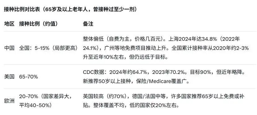 美国老年人相关超额死亡率约20~30/10万(呼吸或下呼吸道,季节平均);部分季节更高,但整体低于中国估计;欧洲老年人:平均约21~36/10万(呼吸相关)。