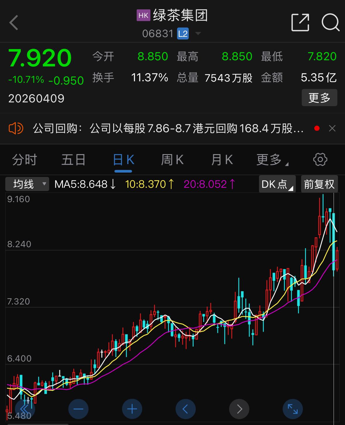股价跳水的直接导火索,是一则来自第二大股东的清仓减持公告。当天早些时候,绿茶集团发布公告称,主要股东Partners Group Gourmet House Limited已于4月8日订立多项股份出售协议,合计将出售约1.06亿股,占公司已发行股本的约15.96%。
