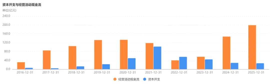 上图蓝色柱子是三一近十年的资本开支情况,一个明显的反“V”,2021年是巅峰,资本开支高达103亿,随后逐年下降,去年已经不到28亿。