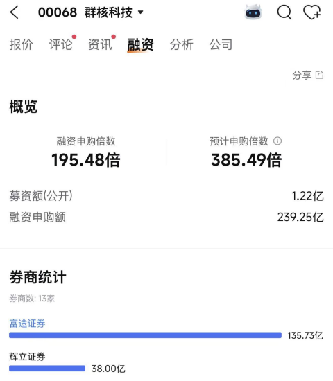 在该公司开启招股的第二天,截至4月10日21时33分,富途牛牛数据显示,该股的融资认购倍数为195.48倍,融资申购额为239.25亿港元。