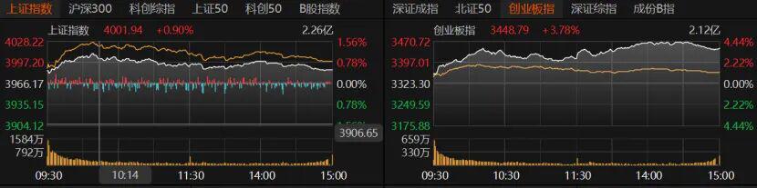 前一交易日回调后,周五A股表现不错,尤其是创业板指数。当日重要指数高开高走,沪指收涨0.51%报3986.22点,创业板指收涨3.78%报3448.79点,深证成指收涨2.24%。上证50指数涨0.51%,沪深300、科创50、北证50指数涨幅均超过1.5%。