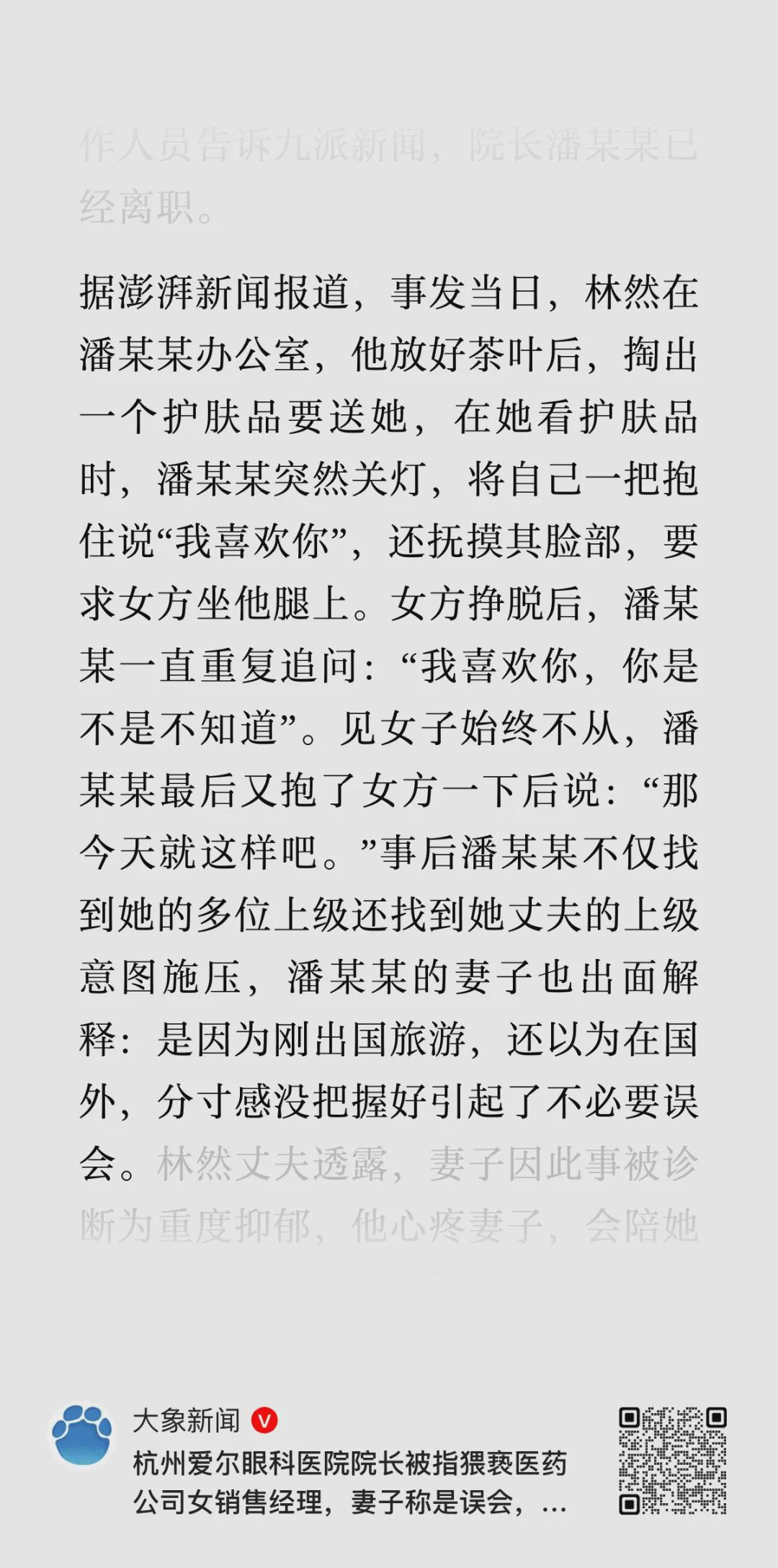 斯基搜了一下,杭州爱尔眼科确实有一位姓潘的院长,但他看上去跟林女士描述的潘院长大相径庭。