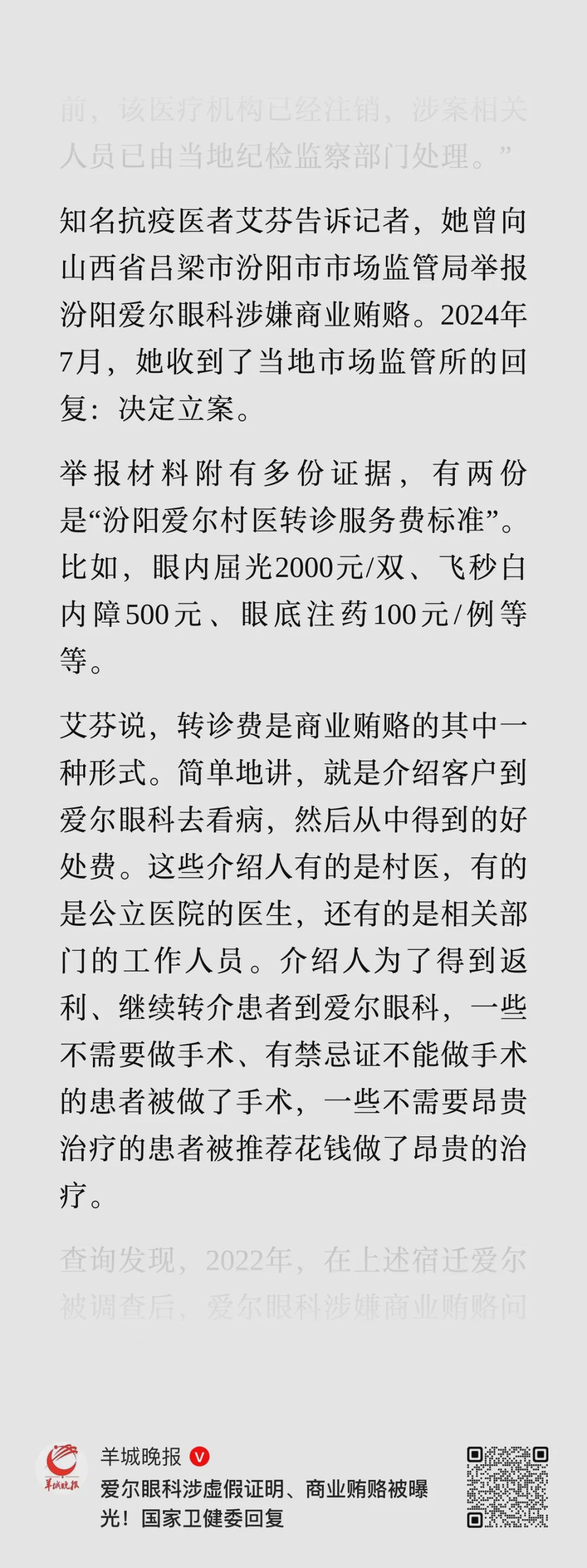 一直硬刚爱尔眼科的医生艾芬也曾经举报过山西吕梁汾阳爱尔眼科涉嫌商业贿赂。
