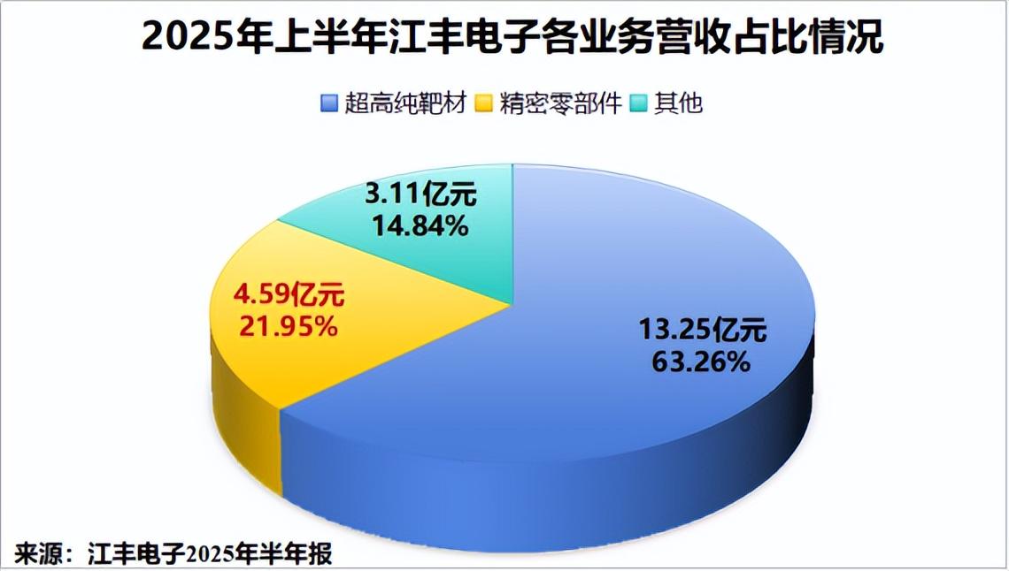 2025年上半年,江丰电子“精密零部件”业务实现营收4.59亿元,同比增长15.12%,占总营业收入的21.95%。