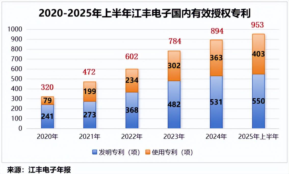 截至2025年上半年,公司及子公司共取得国内有效授权专利953项;其中,发明专利550项,实用新型专利403项。