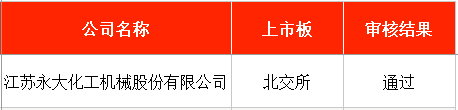发审委审核方面,上周北交所召开了新一期上市审核委员会审议会议,江苏永大化工机械股份有限公司(下称“永大股份”)成功过会。
