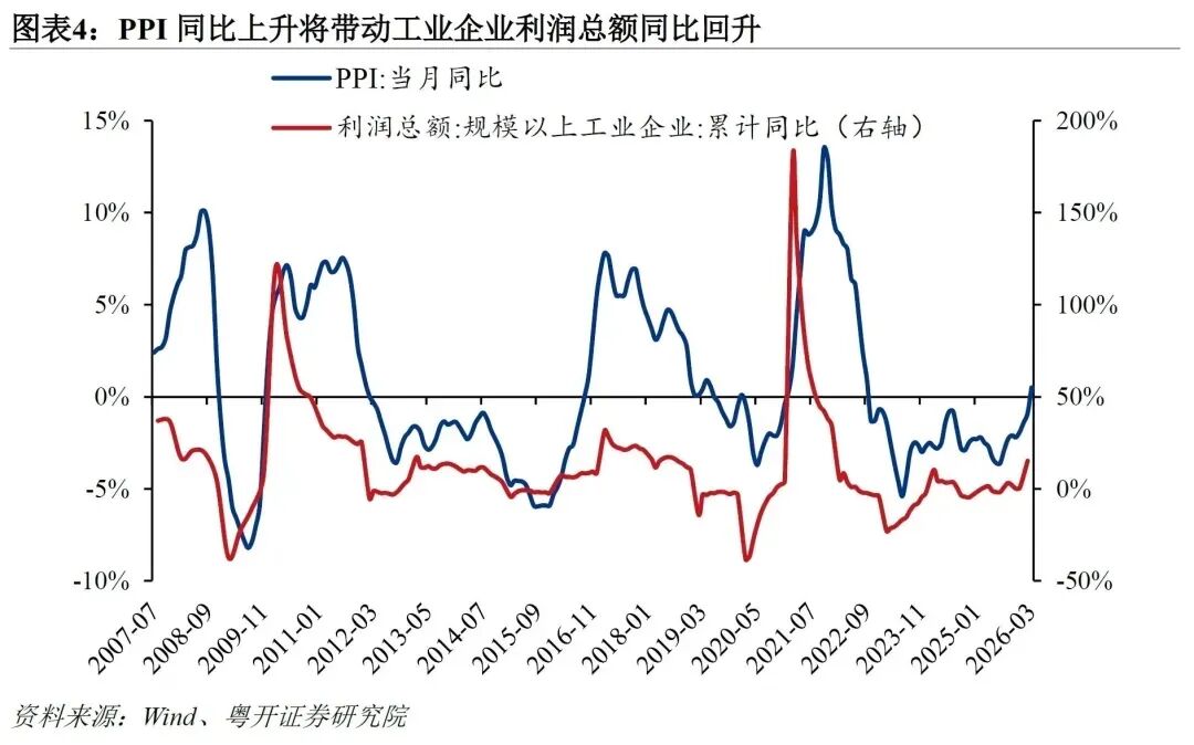 然而,2026年3月,在能源价格飙升驱动下,PPI同比上涨0.5%,“提前”由负转正。