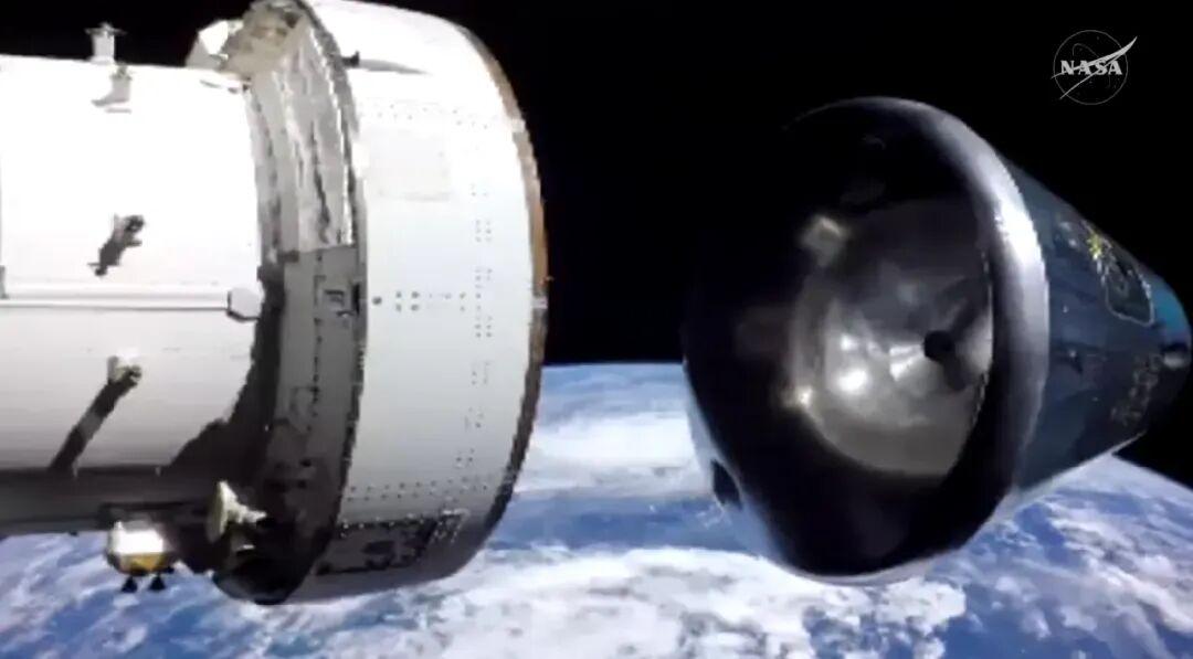 07:33:服务舱与乘员舱成功分离,服务舱随后在大气层中烧毁。图源:NASA