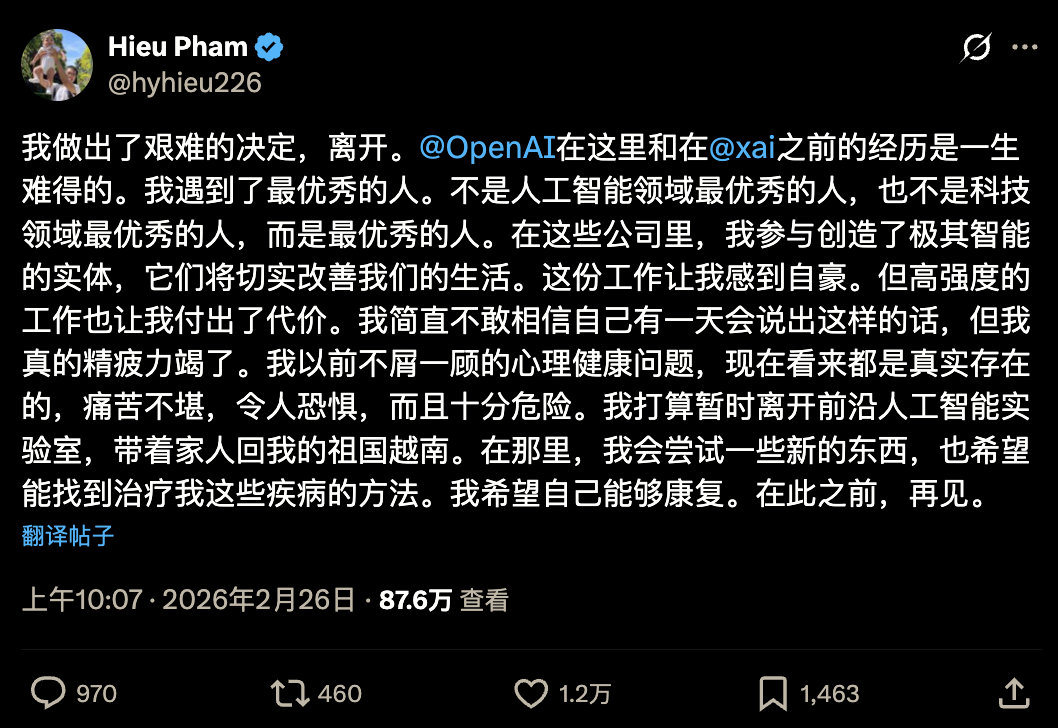 【新智元导读】OpenAI 工程师因严重精神透支辞职回国,撕开了硅谷 AI 圈残酷的内卷真相。在「0-0-2」极限压榨与道德焦虑双重折磨下,xAI、OpenAI 等巨头的核心研发骨干正掀起一场史无前例的集体逃亡。