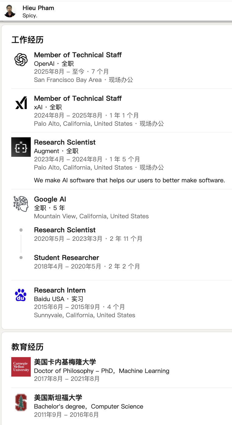 他在吴恩达主管时期的百度硅谷实验室,与 AnthropicCEODario Amodei 当过同事,后面从谷歌到 xAI,再到如今刚刚离开的 OpenAI。