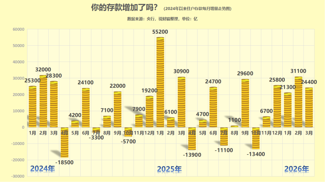 即,今年3月份,住户存款又增加2.44万亿。