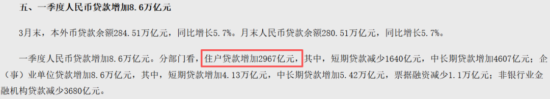 猫崽一瞬间还以为看错了,一季度住户贷款增加2967亿!