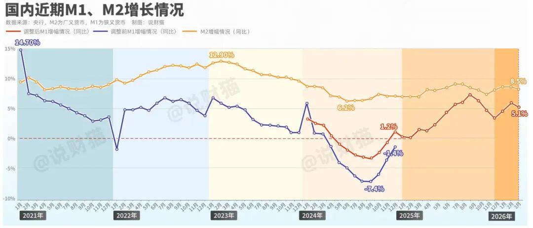 而M1增速最新为5.1%,环比也跌了0.8个点。