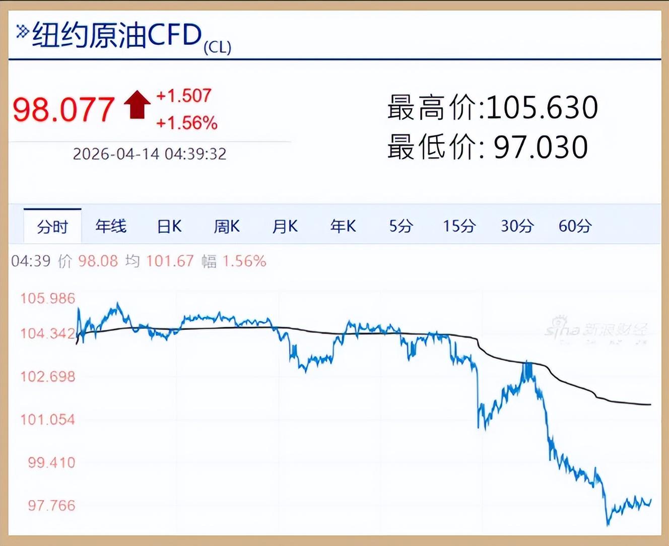 截至北京时间今晨4.30许,纽约原油期货的走势——