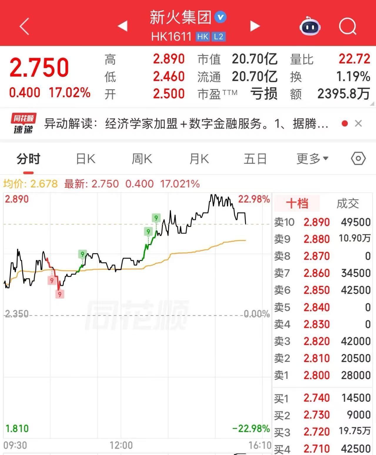 4月20日,红星资本局就此致电新火集团投资者热线,并给付鹏发去求证邮件,截至发稿未获回应。4月20日,新火集团股价一度涨超22%,截至发稿,涨17.02%,股价为2.75港元/股,总市值为20.70亿港元。