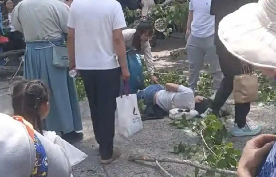 4月18日,多名网友发布视频称,河南开封万岁山武侠城景区内,树干突然倒了,有游客被砸伤。