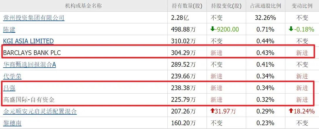 四季度,巴克莱新进304万股;吕强新进238万股;高盛新进225万股。