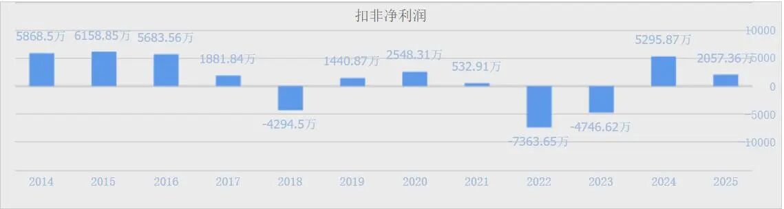 公司的扣非主营利润,自2014年至今,常年在几千万徘徊,甚至不乏亏损的年份。